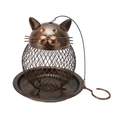 Karmnik dla ptaków Metalowa siatka Karmnik dla dzikich ptaków Dekoracja ogrodu na dziedzińcu Wiszący Retro w kształcie kociaka