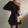 Women Casual Puff Sleeve Dress European and American Loose Slimming Sloping Shoulder Puff sleeve Dress