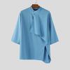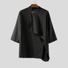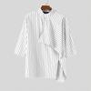 INCERUN Męskie koszule casualowe z półrękawem i stójką, z nieregularnym przodem krzyżowanym w paski