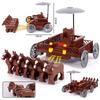 Średniowieczny Egipt Drewniany Powóz Konny Zestaw Klocków - 2 Konie Odpowiedni dla dziecięcych zabawek z klocków