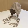 Autumn and winter new plush ear protection bag head hat women's warm versatile wool knitted hat mixed color drawstring