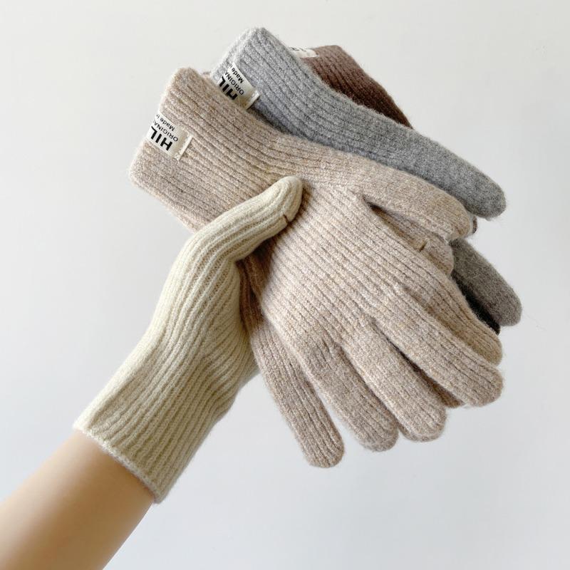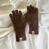 Simple earth-colored wool gloves knitted gloves women's autumn and winter warm advanced relaxation short gloves