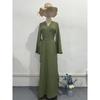 European and American Chinese Style Long sleeve dress 2025 Summer Cold Feeling Lace-up Waist Hugging V-neck Long dress
