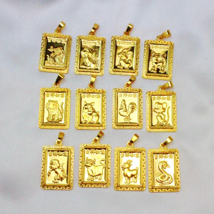 Wisiorek Dwanaście Znaków Zodiaku Wietnamskie Piaskowe Złoto - Biżuteria Platerowana Złotem Mosiężnym - Fabrycznie Nowy Dostępny.