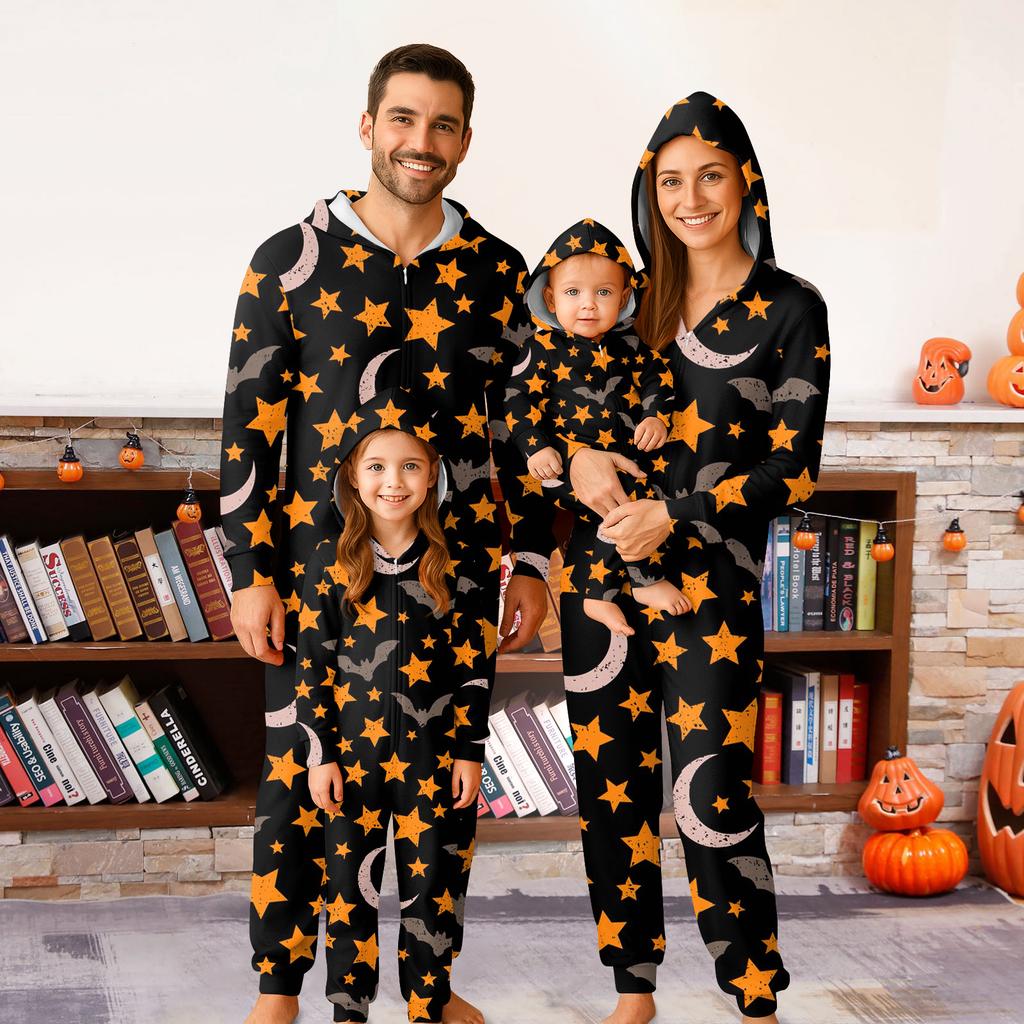 Zestaw kombinezonów z kapturem i długim rękawem zapinanych na zamek, z nadrukiem Halloween, dla całej rodziny