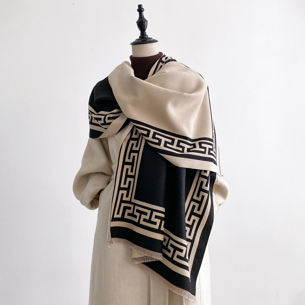 Zagęszczony szalik j geometryczny imitacja kaszmiru szalik damski ciepły dopasowanie kolorów paski frędzle dla dziewczyn