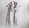 Ta mała krata, 70 cm szeroka i 190 cm długa, frędzle po 10 cm każdy, jest w 100% lniana, oryginalna japońska pojedyncza, duży korpus to mała krata przeplatana lnem w kolorze pierwotnym deszczu i rosy oraz granatowym, bardzo klasyczna