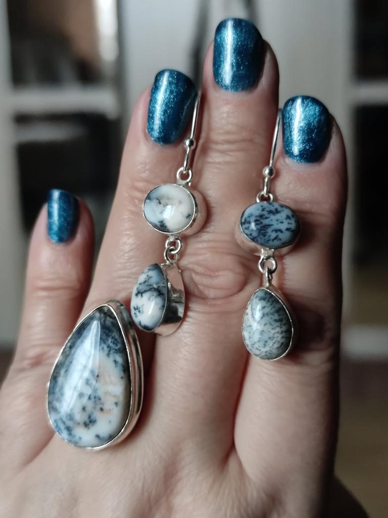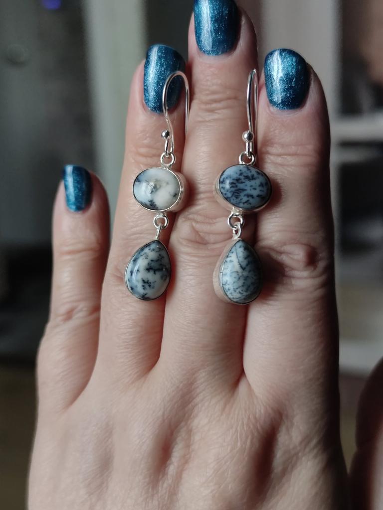 Rzadki Kamień Opal Dendrytowy Srebro Próby 925 Biżuteria Ręcznie Robione Kolczyki 1.88" EE-73-14