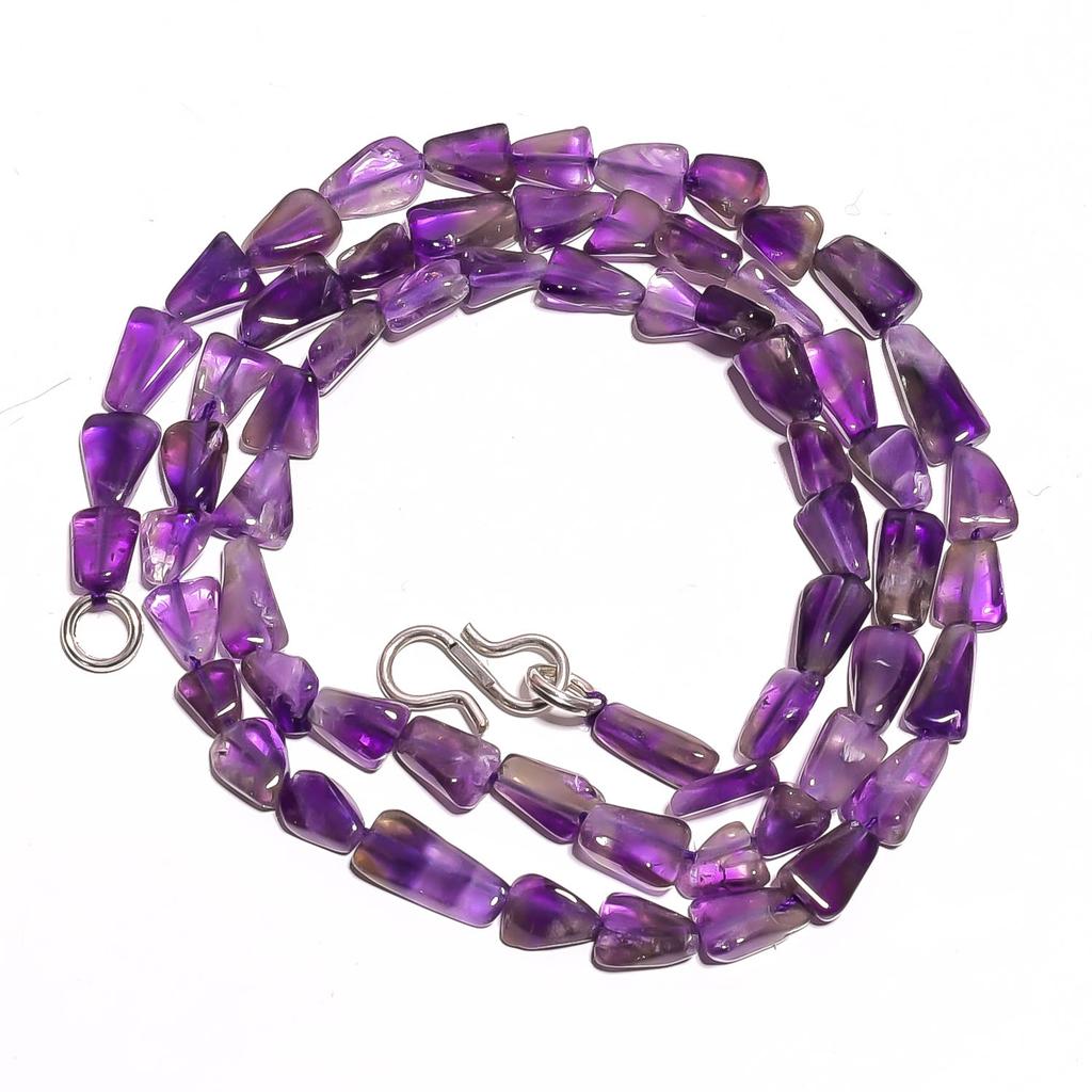 Naturalny Ametyst Kamień Szlachetny Płaski Trójkąt Gładkie Koraliki Naszyjnik 18" UB-3418 UB-3418