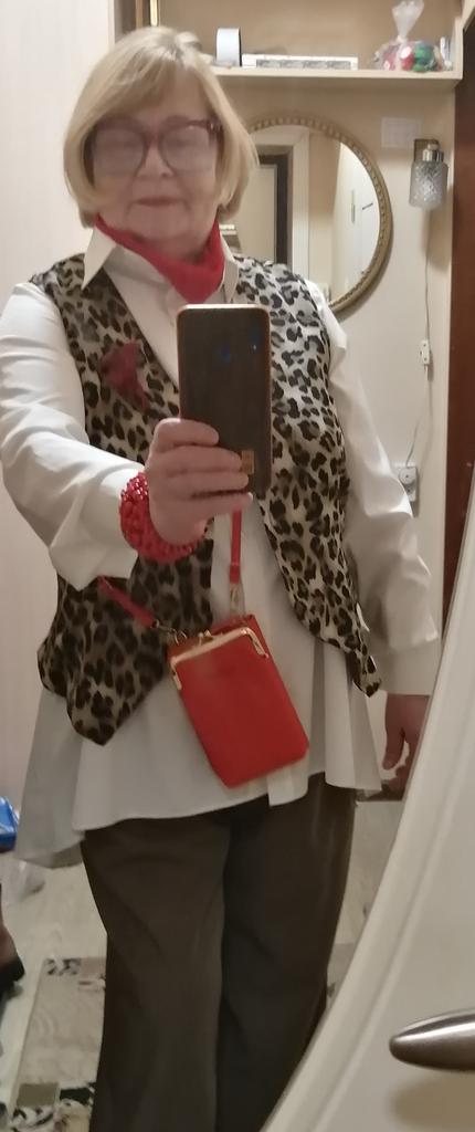 Bransoletka w jaskrawoczerwonym kolorze, szeroka, drewniane elementy połączone gumką. Potrzebuję tej bransoletki do czerwonej torebki. Ogólnie jestem zadowolona.
