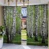 2 szt. Zasłony Domowe Zielony Las z Tłem Krajobrazowym i Kieszenią na Karnisz, Kuchnia, Kawiarnia, Salon