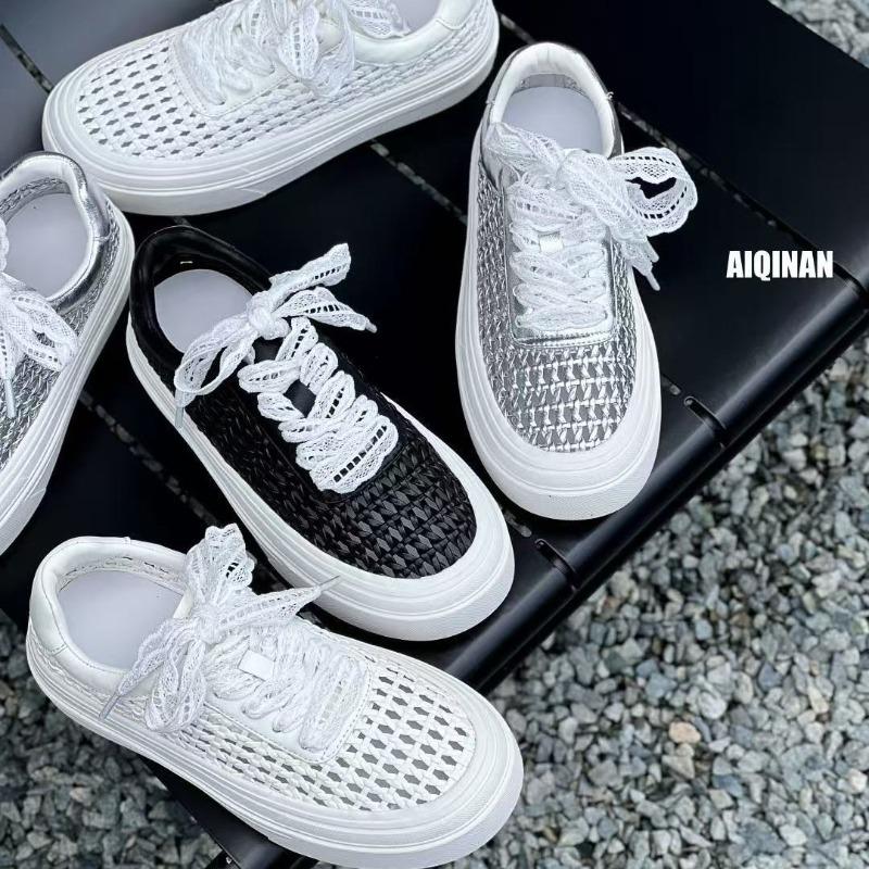 Leather little white shoes women's platform summer new hollow woven casual soft sole breathable versatile fashion board shoes