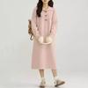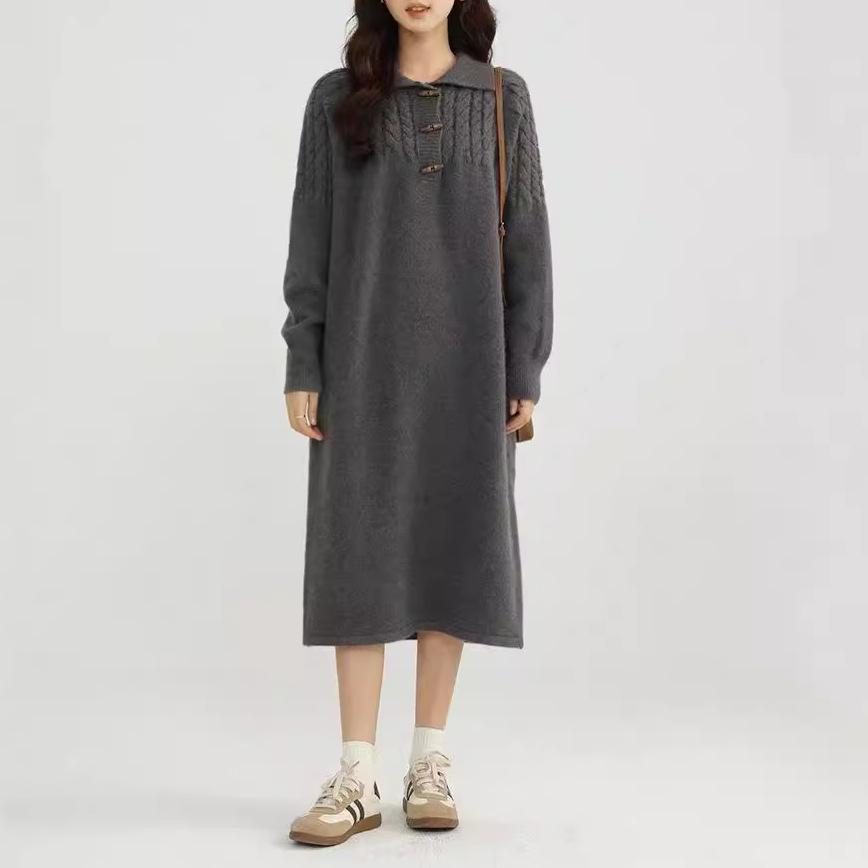 Twist sweater medium and long dress women's lapel autumn and winter loose lazy style temperament thin versatile knitted dress