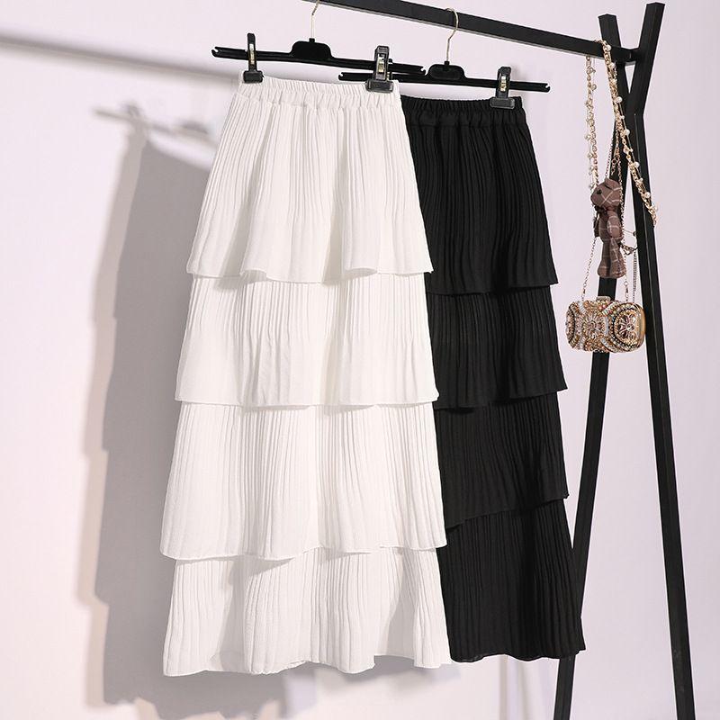 Solid Color High Waist Pleated Cake Skirt Pure Color High Waist Pleated Tiered Skirt