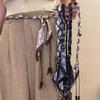 New high-end bohemian retro floral wood bead silk scarf women's tie headband small scarf belt accessories