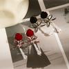Czerwone kolczyki sztyfty z kokardką, niszowy zmysł designu, lekki luksus, moda, kolczyki high-end, jesień, wszechstronne