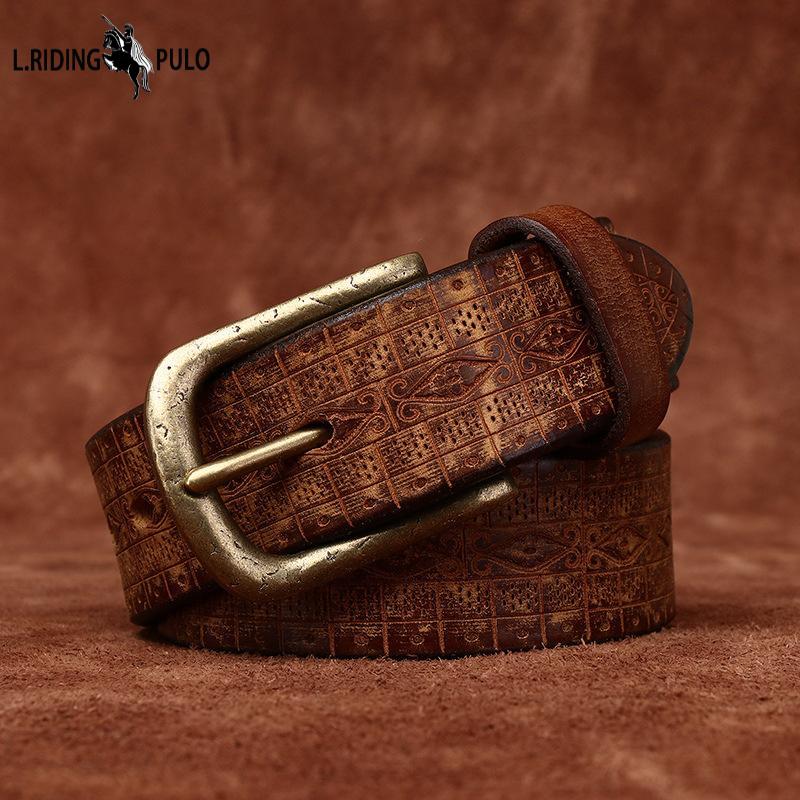 Spersonalizowany pasek tłoczony męski pogrubiony i bardzo gruby, prawdziwa skóra bydlęca, powierzchnia retro, sprana, zniszczona, swobodny pasek z mosiężną klamrą