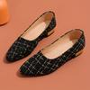 Damskie płaskie buty w kratę z tweedu na miękkiej podeszwie, Lekkie buty na słupku, Eleganckie buty do sukienki z czubkiem