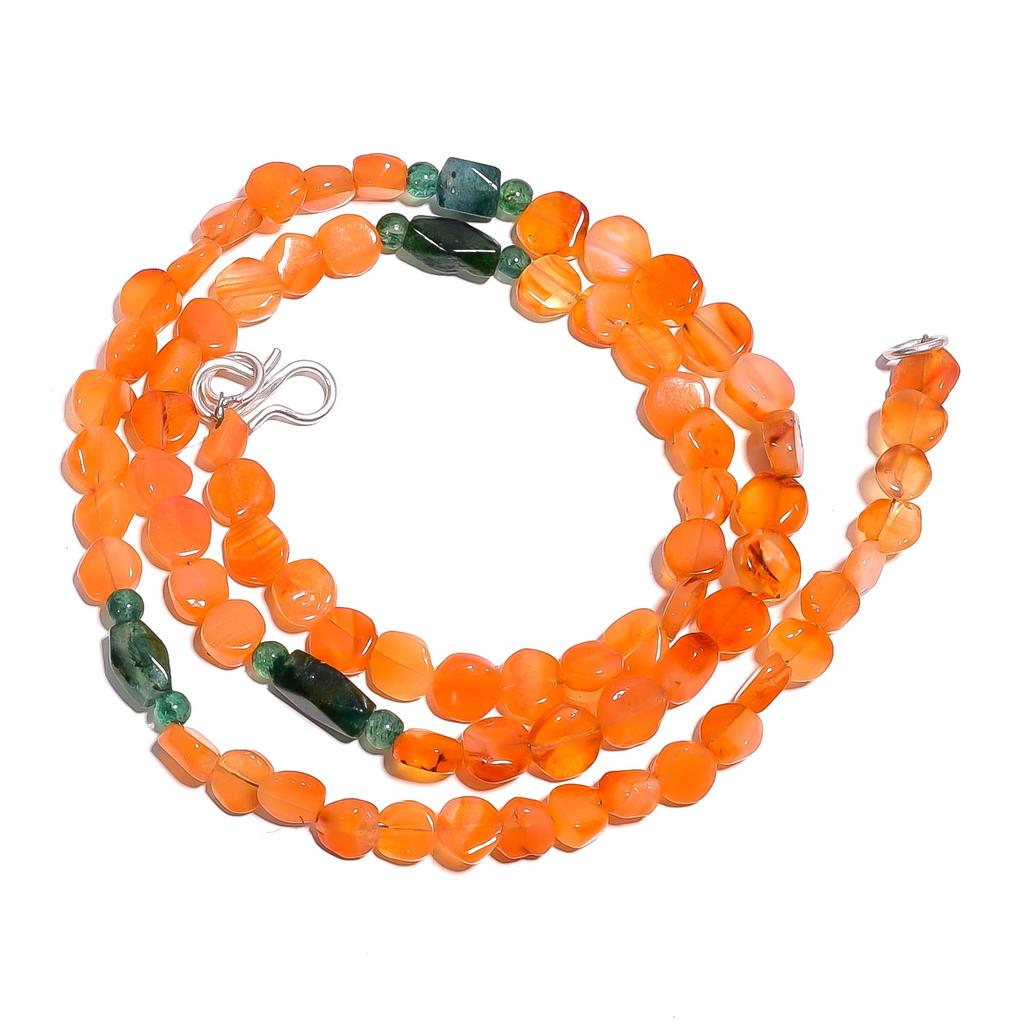 Carnelian Green Aventurine Gemstone Mix Shape Smooth Beads Necklace 17" UB-4061 UB-4061