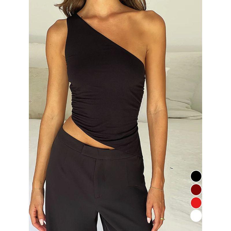Sexy off Shoulder Lace up Camisole Top Sexy Oblique Shoulder Tied Spaghetti-Strap Small Top