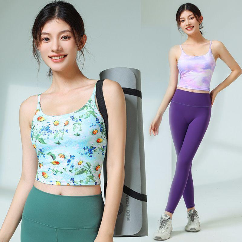 Floral Yoga Clothes Sling Women's Summer Shockproof Push-up One-Piece with Chest Pad Beauty Back Exercise Professional Yoga Vest