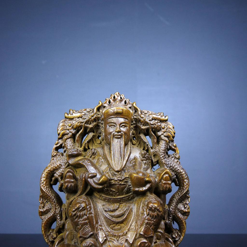 Chinese Boxwood Carved God of wealth Buddha Two-sided Statue Carving Dragon