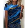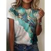 Letni damski top z krótkim rękawem z nadrukiem 3D w kwiatowy wzór z gradientem, modny T-shirt z dekoltem O, kwiatowa tekstura