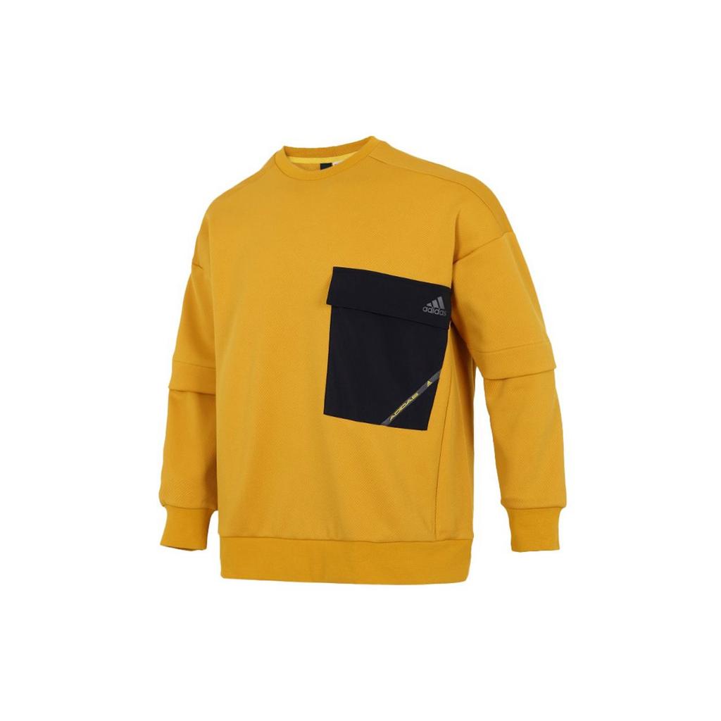Adidas Bluza sportowa męska z kieszenią w bloku kolorów z okrągłym dekoltem Jasnożółta H39349