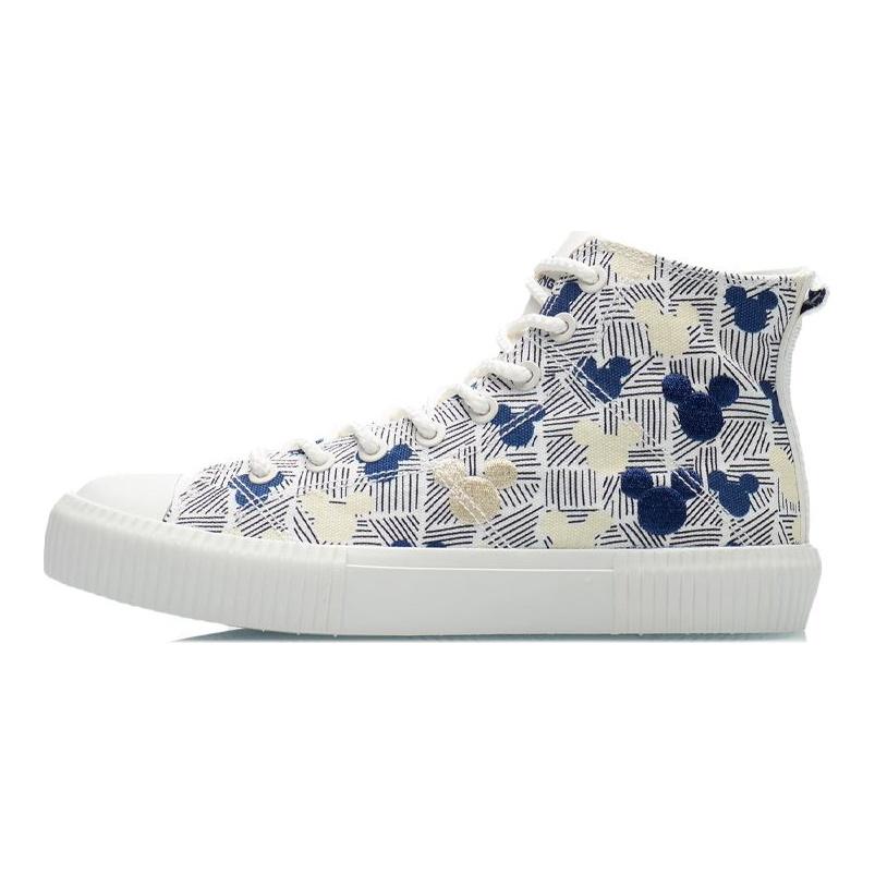 Seria Kolaboracyjna Li Ning Disney Wygodne Klasyczne Casualowe Sneakersy High-Top Damskie sneakersy Białe Niebieskie Żółte AGCR284-3