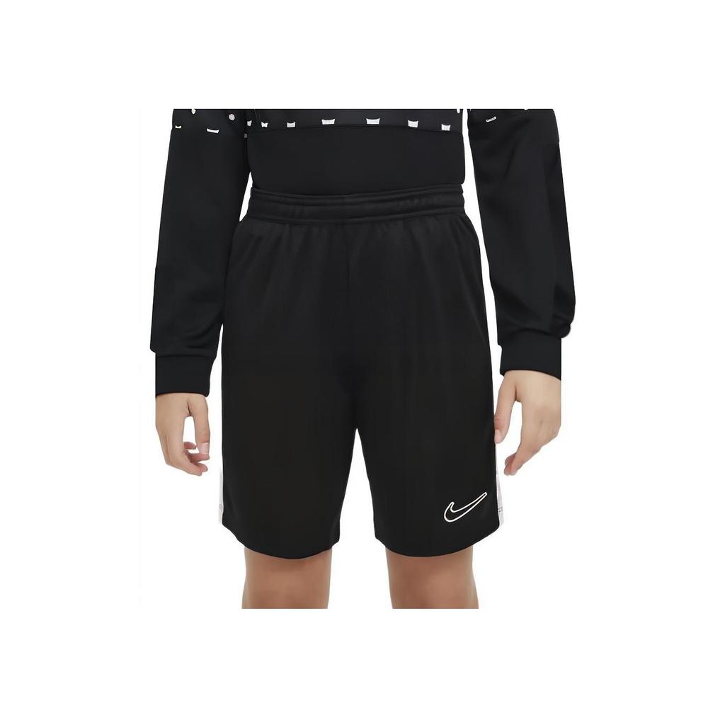 Nike Spodenki chłopięce Dri-FIT Academy 23 z blokiem kolorów i nadrukiem logo, proste nogawki Spodenki chłopięce Czarne DX5476-010