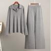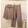 Women's Fall/Winter Oversized Set Polo-Neck Knit Pullover + Wide-Leg Pants Elegant Two-Piece Set