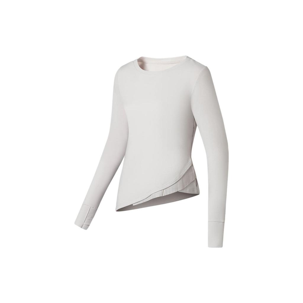Li Ning Fitness Series Solid Color Logo Embroidered Irregular Hem Long Sleeve T-Shirt Women Tops White ATLS054-1