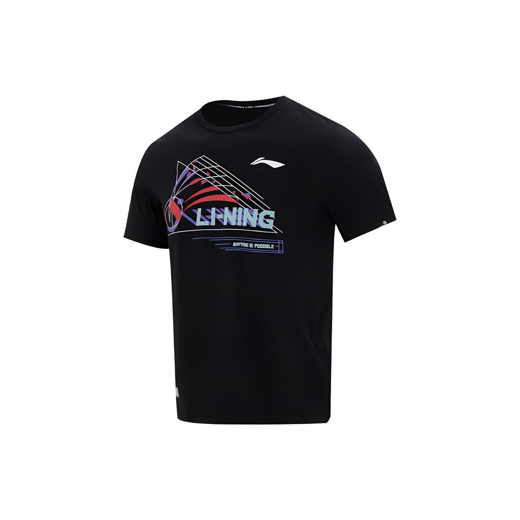 Li Ning Badminton Series Logo Print Letter Round Neck Pullover Short Sleeve T-Shirt Unisex Tops Black AHST699-2