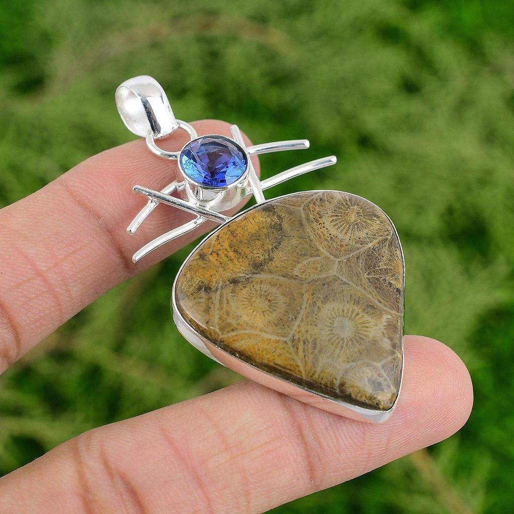 Okazja na Dzień Córki Srebro 925 Gruszka Kamień Koralowy Skamieniały Tanzanit Kwarc Wisiorek