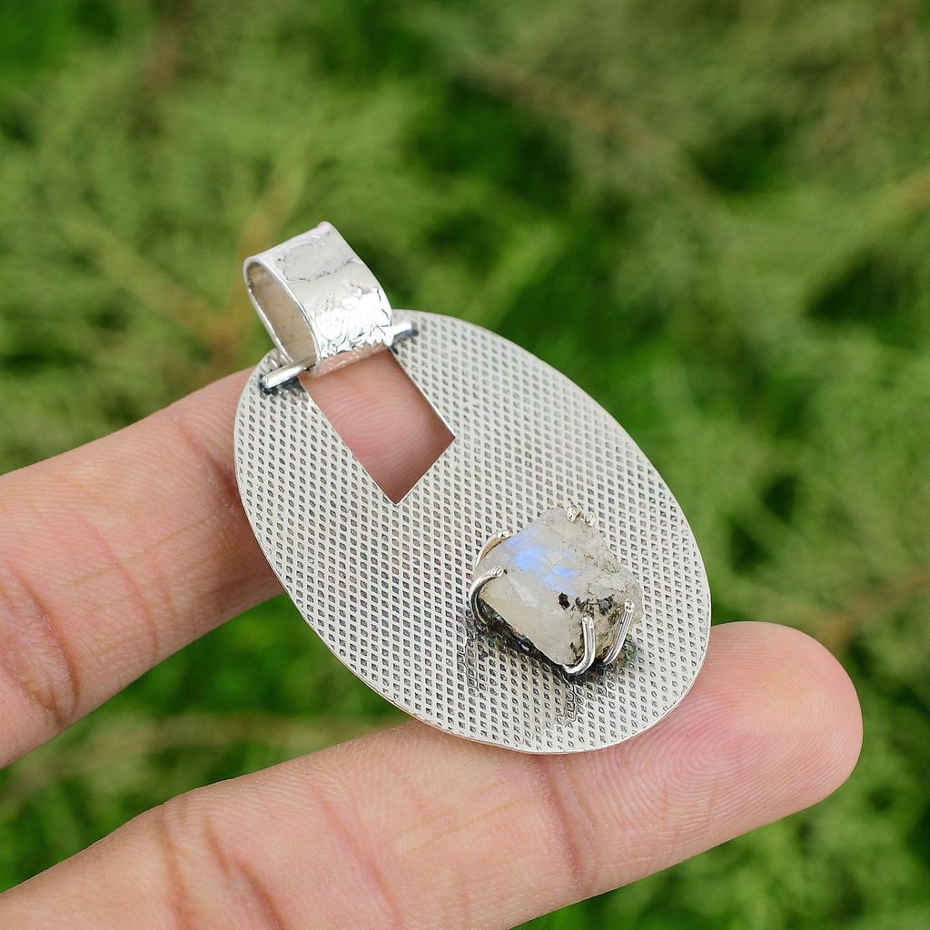 Wyprzedaż Dnia Córki Srebro Próby 925 Surowy Kamień Kamienia Księżycowego Tęczowego Boho Wisiorek
