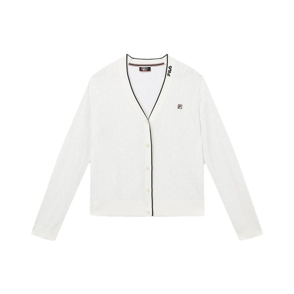 FILA Solid Color Open Front Casual Knit Sweater Women sweater Steam-White F11W331410FIV