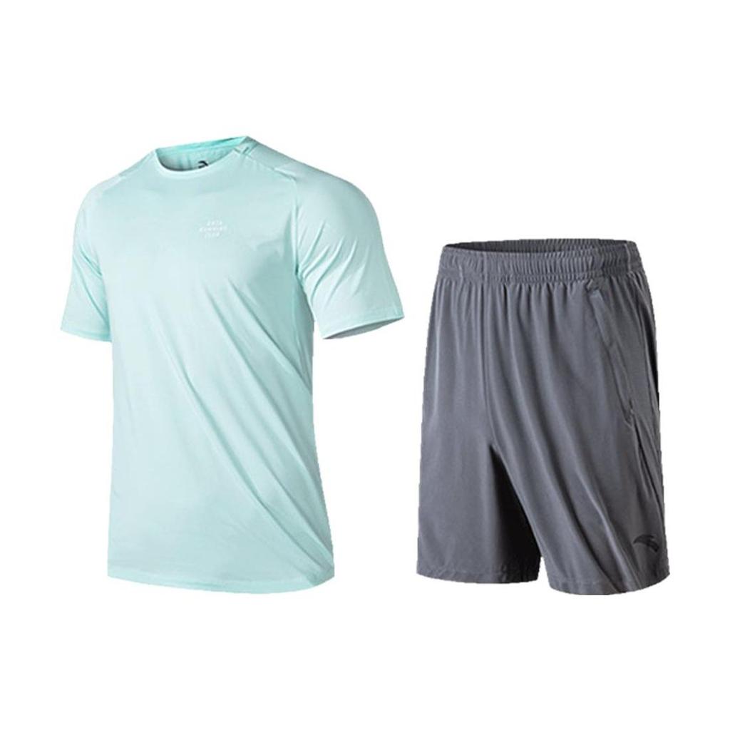 Anta Solid Color Casual Breathable Sports Round Neck Short Sleeve Shorts Set Men Sets Blue 952225229-1