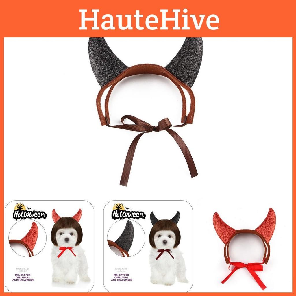 Adorable Pet Costume Accessory Set With Horned Headband And Cute Wig Parties For