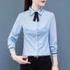 Damska Bluzka Wiosna Jesień Biuro Jednolita Niebieska Biała Top Damski Długi Rękaw Biurowy Klapa Slim Koszula
