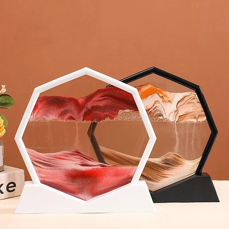 Sandscape Moving Sand Art Picture Quicksand 3D Liquid Hourglass Deep Sea Flowing Sand Painting Frame Office Home Decor Gifts