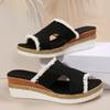 Duży rozmiar konopne sznurkowe klapki na koturnie damskie wiosna lato nowe płócienne codzienne i lekkie do noszenia na zewnątrz płaskie dno fajne klapki