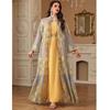 Middle East Cross-Border Robe Women clothes Leaves Embroidery Robe cardigan Two-piece Set Belt Cardigan Dress Dress