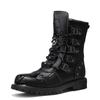 Modne Gorące Męskie Czarne Skórzane Duży Kwadratowy Nosek Sznurowane Gruba Podeszwa Platforma Botki do Kostki Męskie Brytyjski Styl Motocyklowe Krótkie Buty
