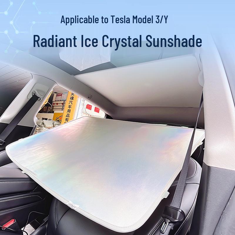 Tesla Model Y/3 Iridescentny Kryształ Lodowy Osłona Przeciwsłoneczna - Ochrona Szyberdachu i Izolacja Termiczna