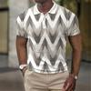 Męska koszulka polo casual z geometrycznym wzorem w paski, drukowana cyfrowo 3D