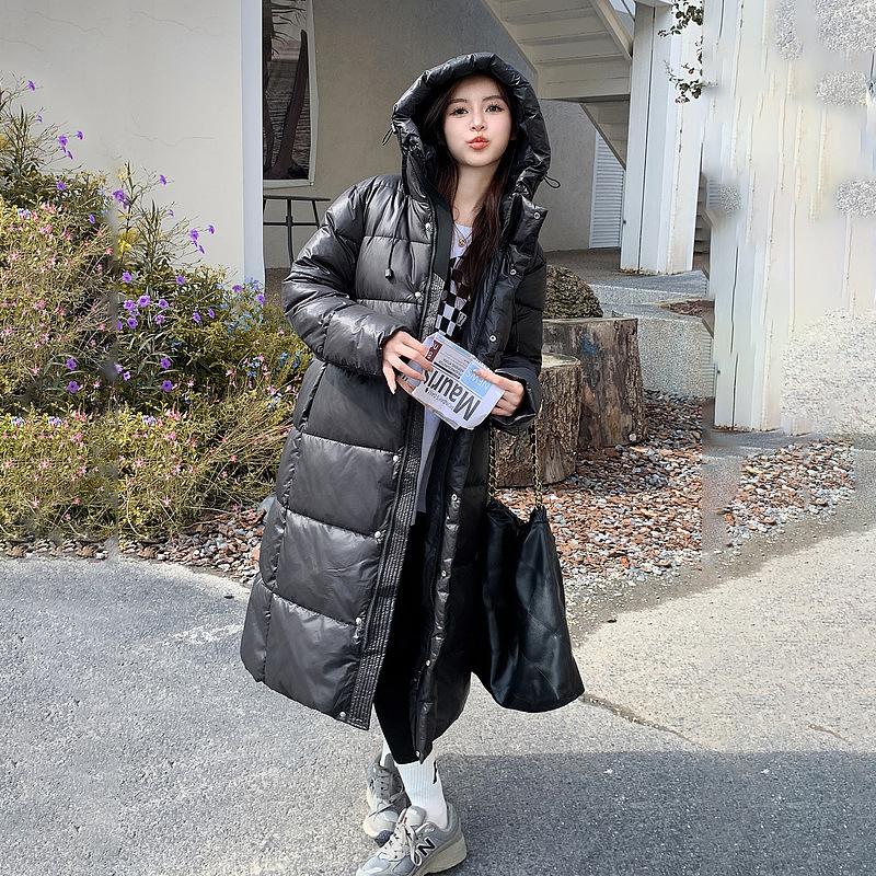 Nowa kurtka płaszcz z kapturem bawełniana plus size zimowa damska przedłużana do kolan ciepła bawełniana kurtka