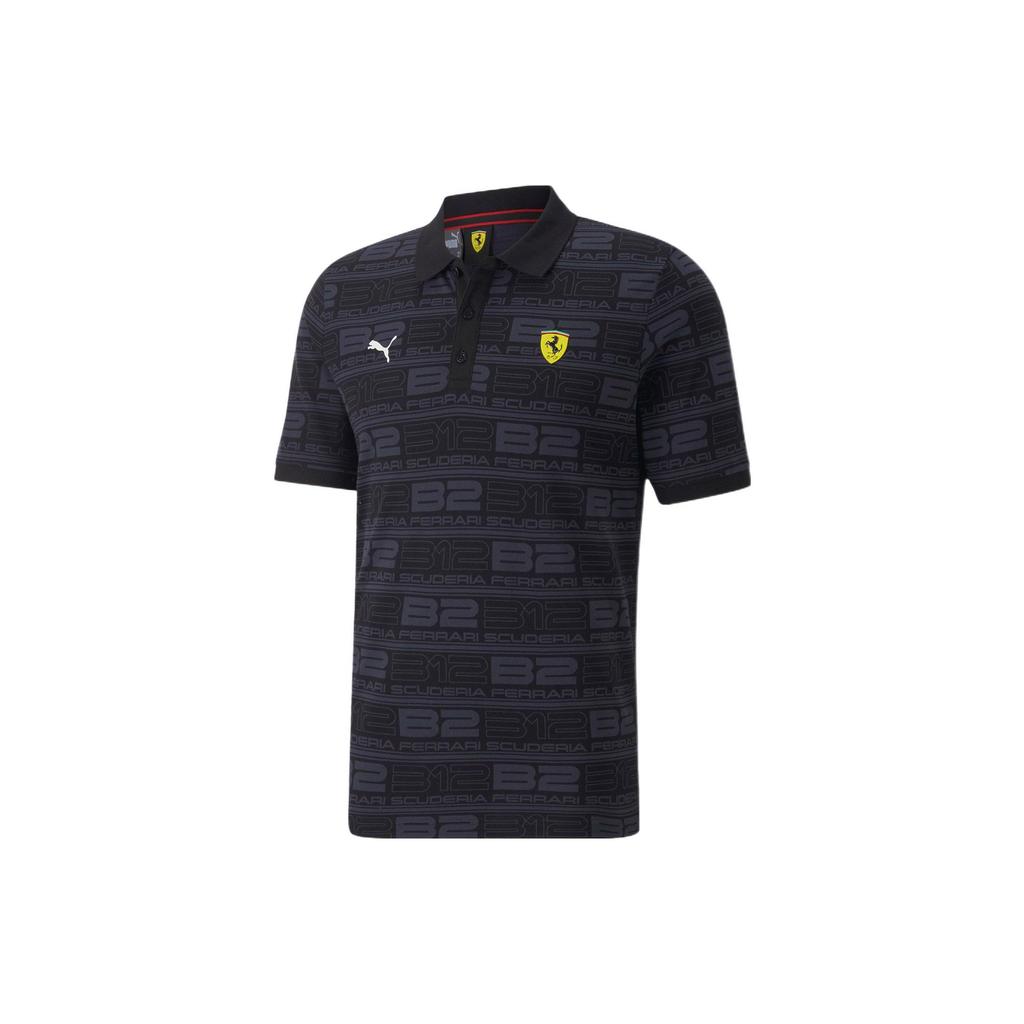 Puma FW22 Seria Wyścigowa Ferrari Cały Nadruk z Logo Koszulka Polo z Krótkim Rękawem Męskie Koszulki Polo Czarna 535844-01