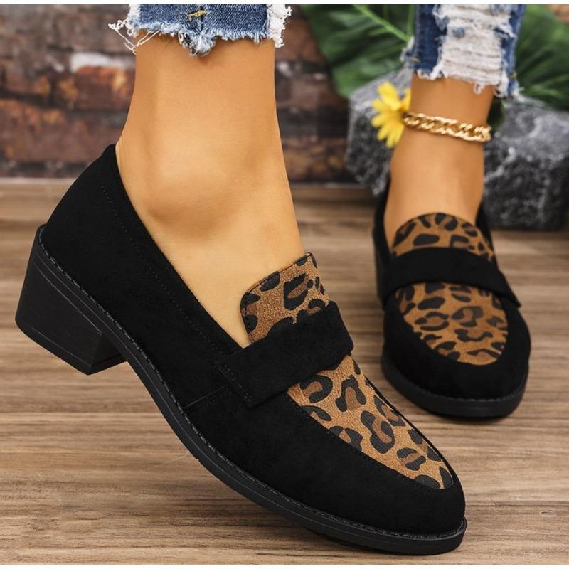 Modne Damskie Buty Casual Wiosna Nowe Modne Mokasyny Duży Rozmiar Casualowe Średni Obcas Sneakersy Damskie Okrągły Nosek Panterka Wsuwane Buty