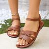 Modne Damskie Sandały Nowe Płaskie Sandały Casualowe z Klapką Damskie Rzymskie Wąskie Paskowe Sandały na Kostkę Zapinane na Klamrę Plażowe Designerskie Buty dla Kobiet