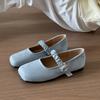 Fashion Comemore Spring Autumn Flat Single Shoes Suede Solid Square Head Mary Jane Shoe Rhinestone Buckle Temperament Flats Mocasines